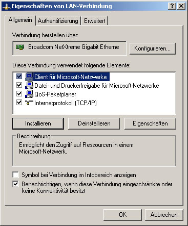 Um den DSL Treiber zu installieren, klicken sie mit der rechten Maustaste auf das Netzwerkumgebung Symbol und lassen sie sich die Eigenschaften Anzeigen. Nun klicken sie wieder mit der rechten Maustaste auf bereits bestehende LAN Verbindung und lassen sie siche die Eigenschaften dieser anzeigen.